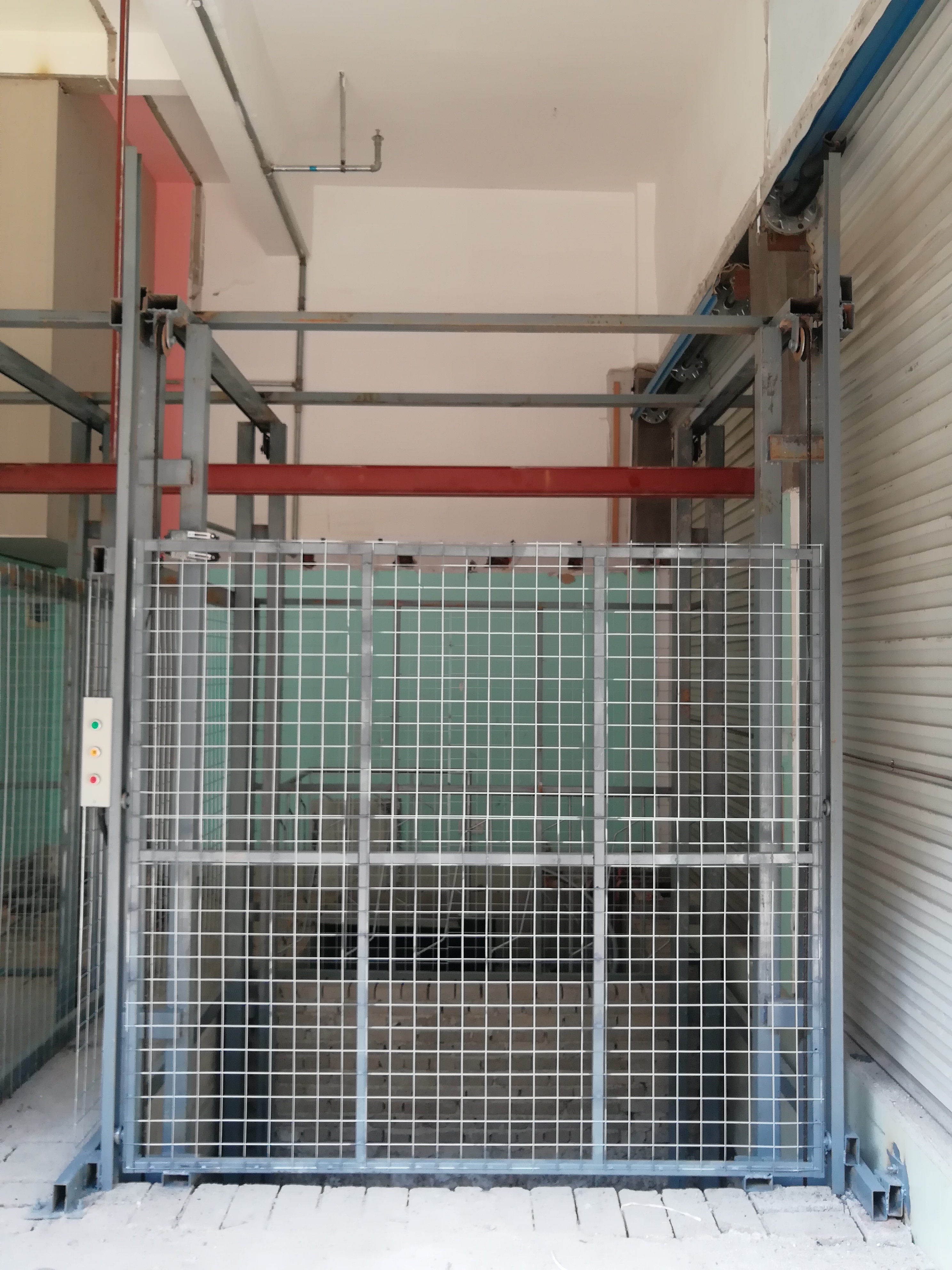 湖南婁底婁星區(qū)某超市老板經(jīng)過多方參觀以及了解,最終選擇我們山德2T-6米導(dǎo)軌升降貨梯,以下是安裝過程圖片!